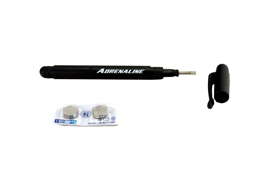 Includes two batteries for the Adrenaline mechanical frame timer (Adrenaline Shocker CVO, Adrenaline TM40, Adrenaline Luxe) and an Adrenaline precision screwdriver for the small screws. Note the screwdriver tip may be flipped which creates a precision slotted screwdriver.